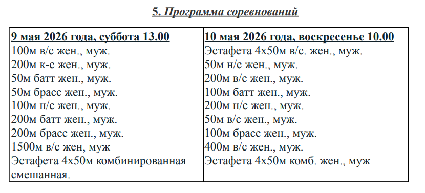плаванию в категории «Мастерс» среди любителей и ветеранов спорта. 9-10 мая 2026г состоится в Гомеле на базе Государственного