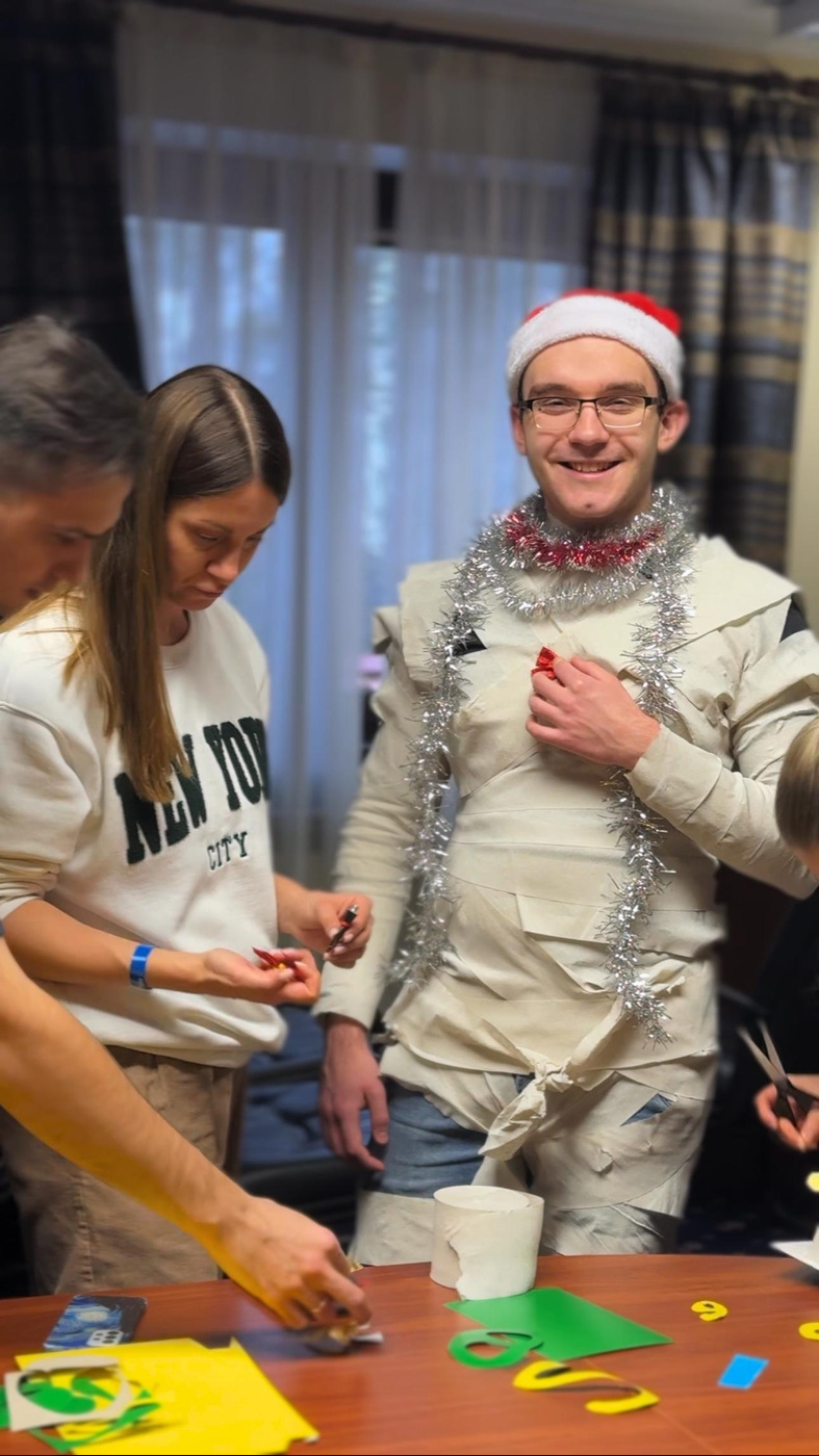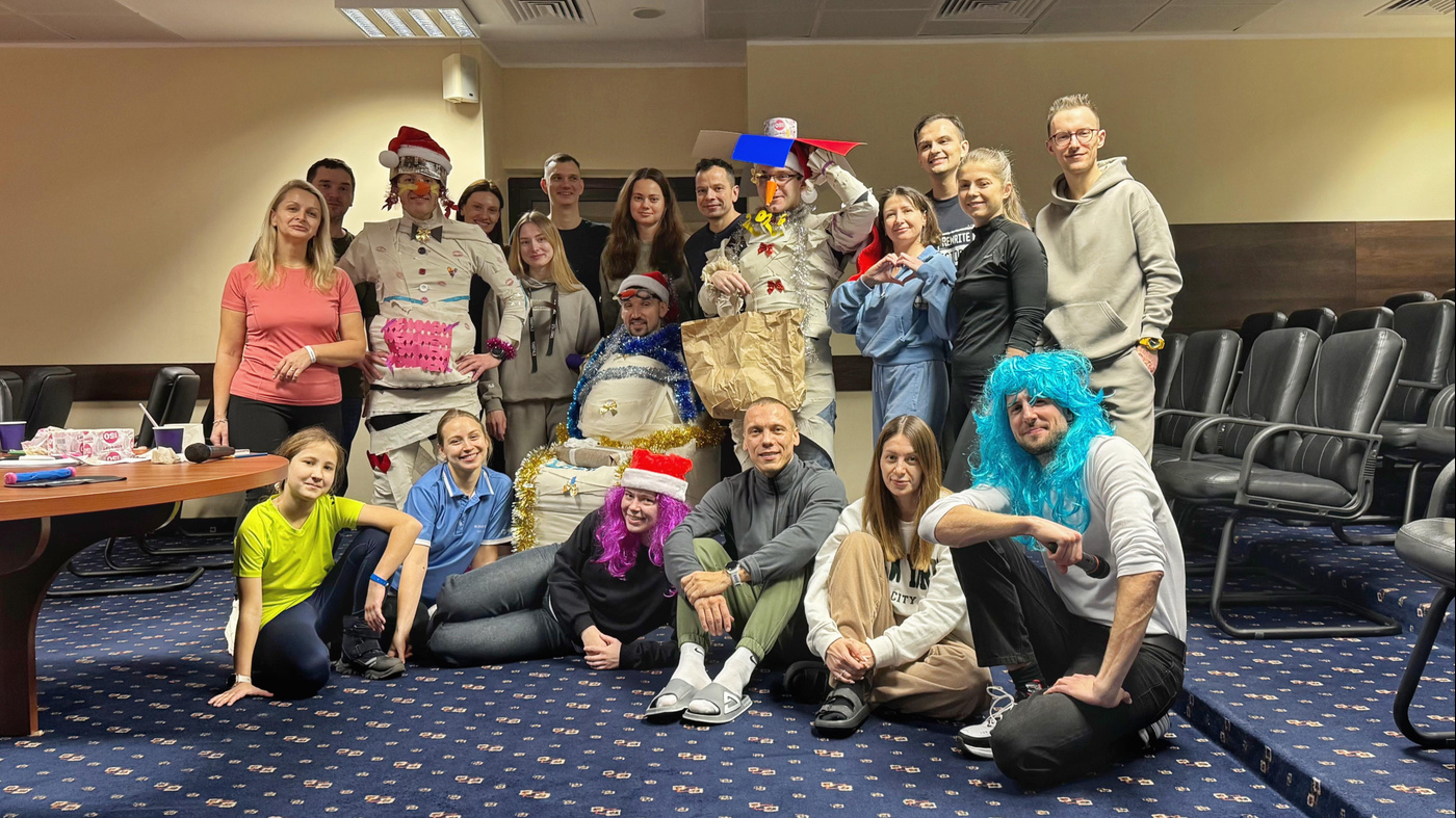 ☃️ После — творческая игра «Собери снеговика»! Эльфы Тристайла подготовили активности, все разделились на команды. Снега нет — не беда!