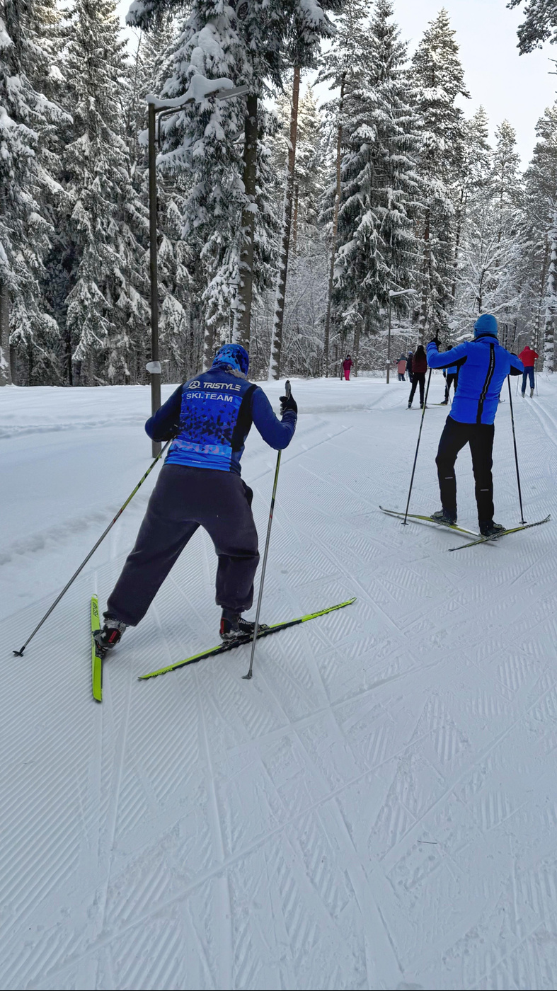 Ребята, кто доехал, вышли на лыжную тренировку. Тренер TriStyle по лыжным гонкам Алексей Лукьянов с индивидуальным подходом поставил новичков на лыжи, а опытным дал интересные задания. Лыжи — отличная тренировка на все мышцы: кардио + сила 💪.