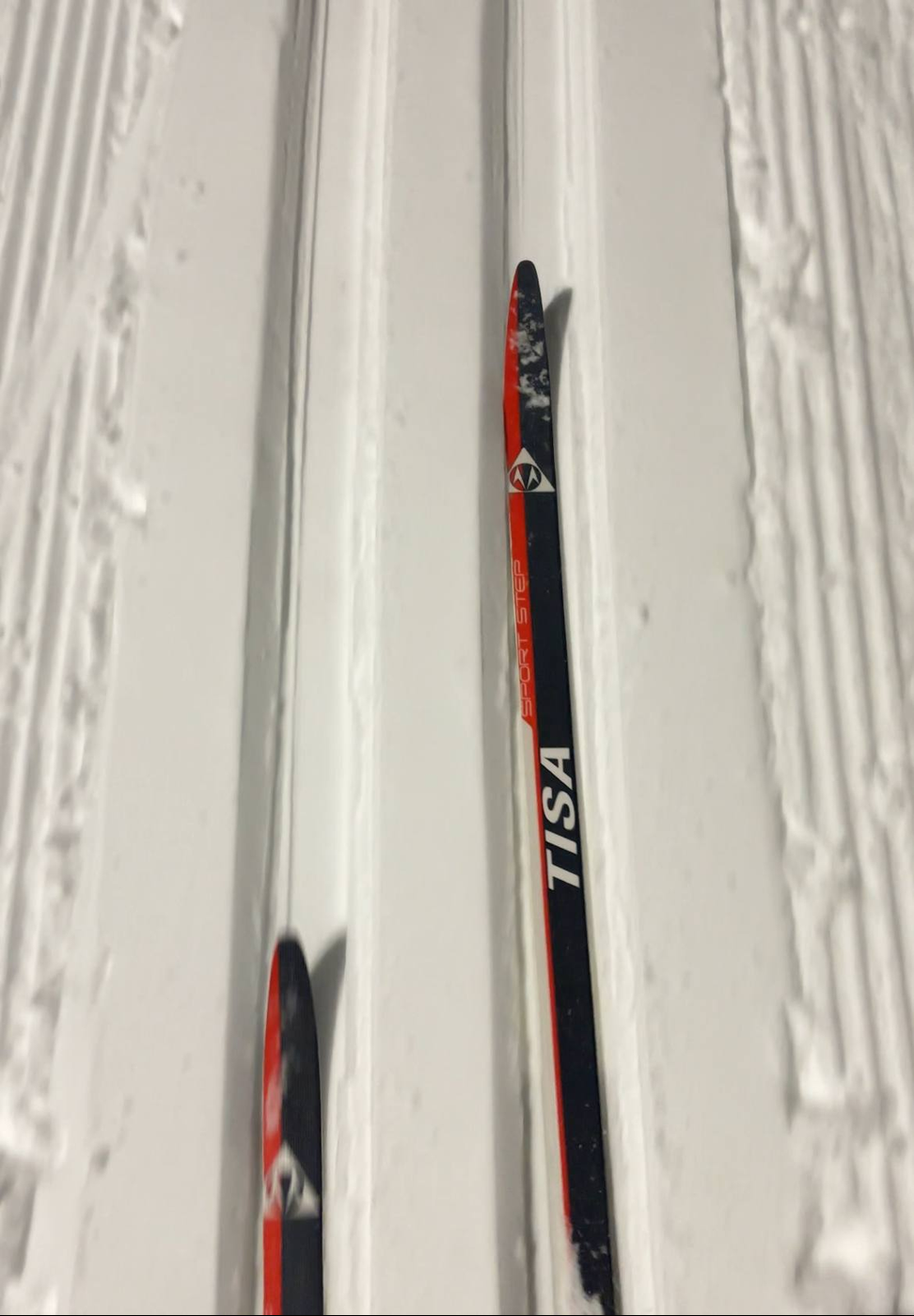Первый круг, второй круг, текут сопли. Тренируем конек (не знаю пока, как правильно), пробуем держать баланс и ехать только на одной лыже в колее. Пробуем, пробуем, пробуем.