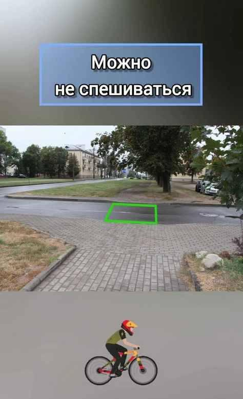 - Переезд через пешеходные переходы не спешиваясь (не забываем про спешивание). Можно не спешивать на светофорах обозначенных знаком велопереезд.