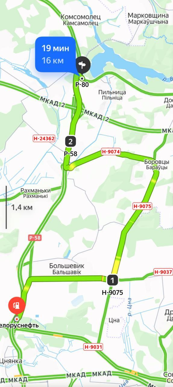 Движение по р58 (дублер) чернз деревни сворачиваем h9037, далее на h9075, далее на h9074 и с нее выезжаем на р58, с р58 выезжаем на р80, дорога вдоль Вячи с разнообразным рельефом и хорошим покрытием, достаточно широкой обочиной и минимальным трафиком.
